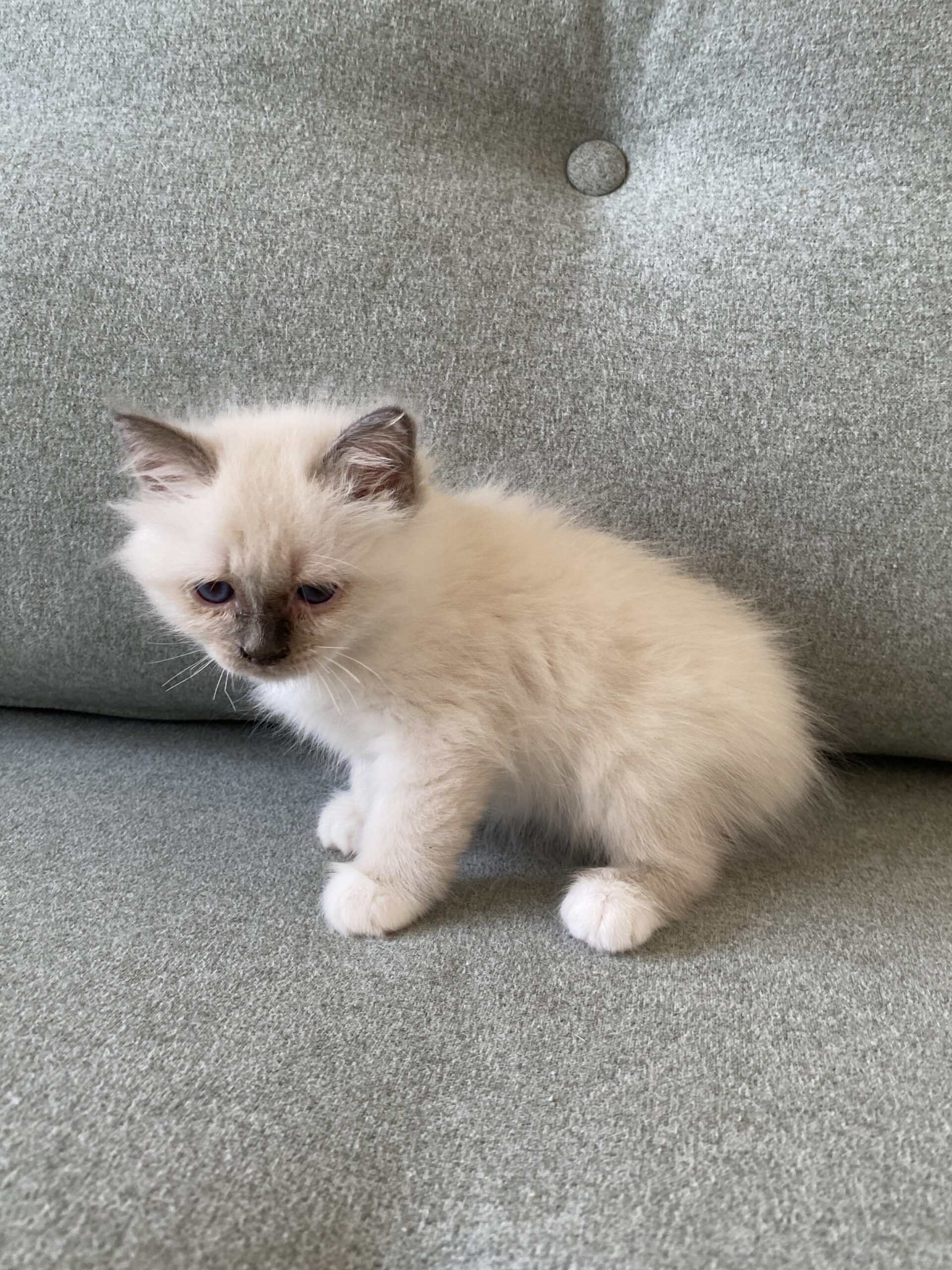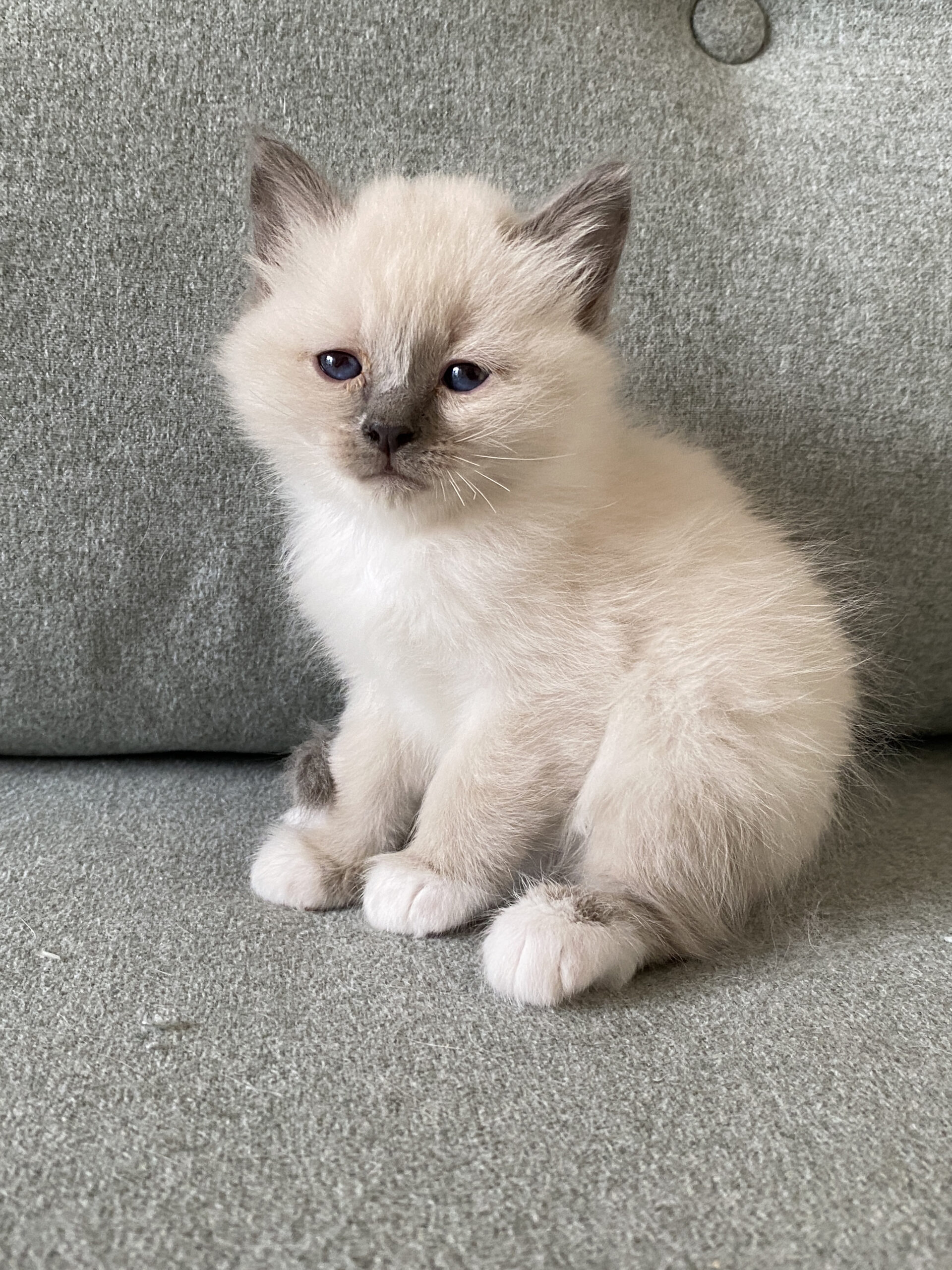 Urocze kociaki szukają nowego domu. Dnia 14 lipca w naszej hodowli przyszły na świat kocięta miotu „J”. W miocie urodziły się trzy kotki – wszystkie w kolorze BLUE POINT (niebieskie). Maluchy są towarzyskie, żywiołowe, oswojone z psami i socjalizowane od urodzenia. Zdjęcia wykonane w 4 tygodniu życia kociaków. Bardzo szybko nauczyły się korzystania z kuwety. Uwielbiają kontakt z ludźmi, pieszczoty i zabawę na wszelkie sposoby.